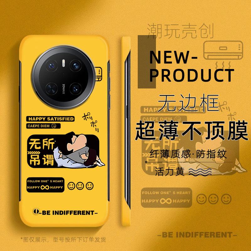 适用于华为MATE70PRO手机壳卡通小新无所吊谓60PRO+超薄MATE40无边框50RS不顶膜Pura70新款60半包30p防摔硬壳