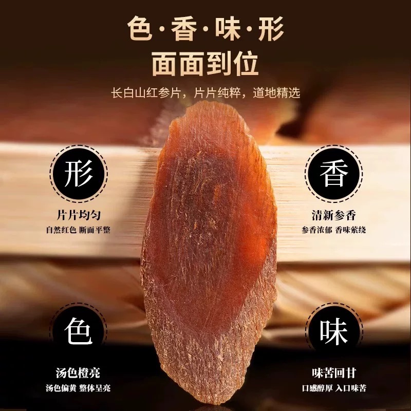 长白山红参中药材人参无糖红参片茶高丽参整支吉林正品官方旗舰店