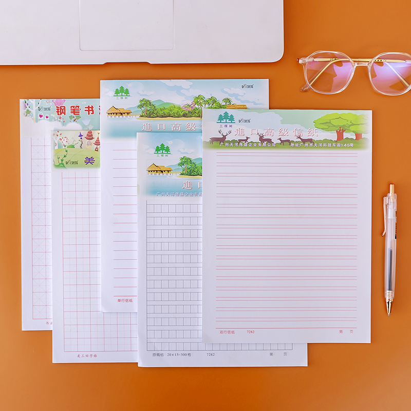 伟盛三棵树原稿纸400格语文作文本300格500字单行双行信纸本小学生作文纸加厚入党员申请书稿纸本四百小方格