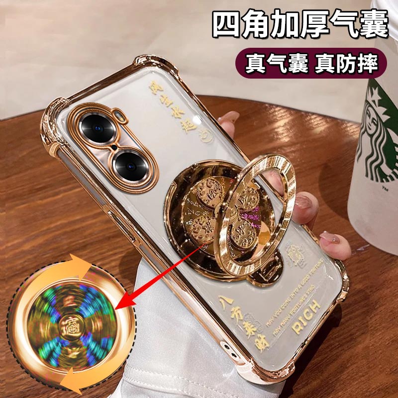 适用华为荣耀60PRO手机壳风生水起电镀四角防摔Honor60高级感简约气囊荣耀60解压陀螺支架新款保护套