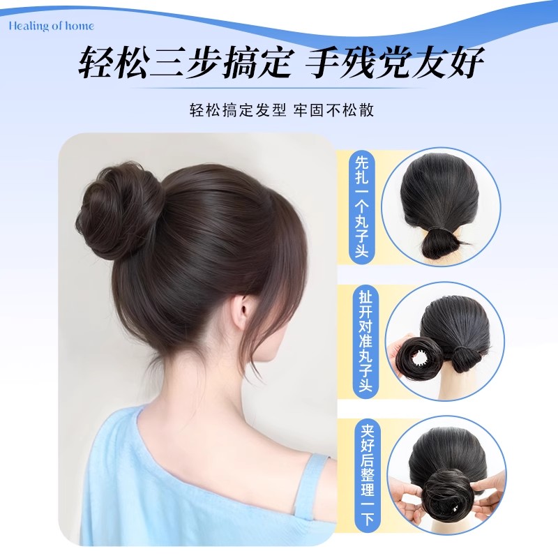 收缩鸟巢丸子头假发发圈女仿真发蓬松花苞头盘发增发量神器假发包