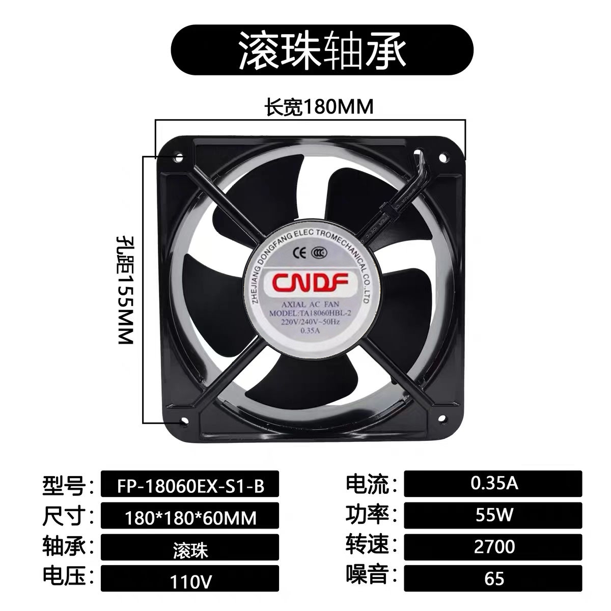 工业排风扇 方形 东方CNDF TA18060HBL-2 220V 轴流风机 散热风扇