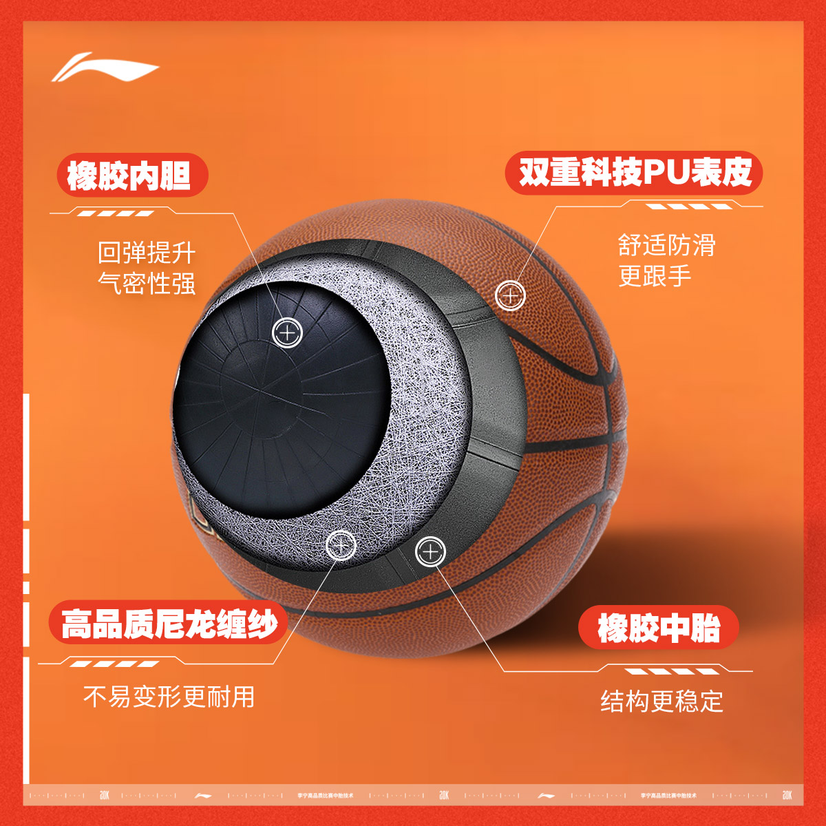 李宁精英篮球 CBA系列手感室内室外耐磨防滑高弹7号标准球LBQK957