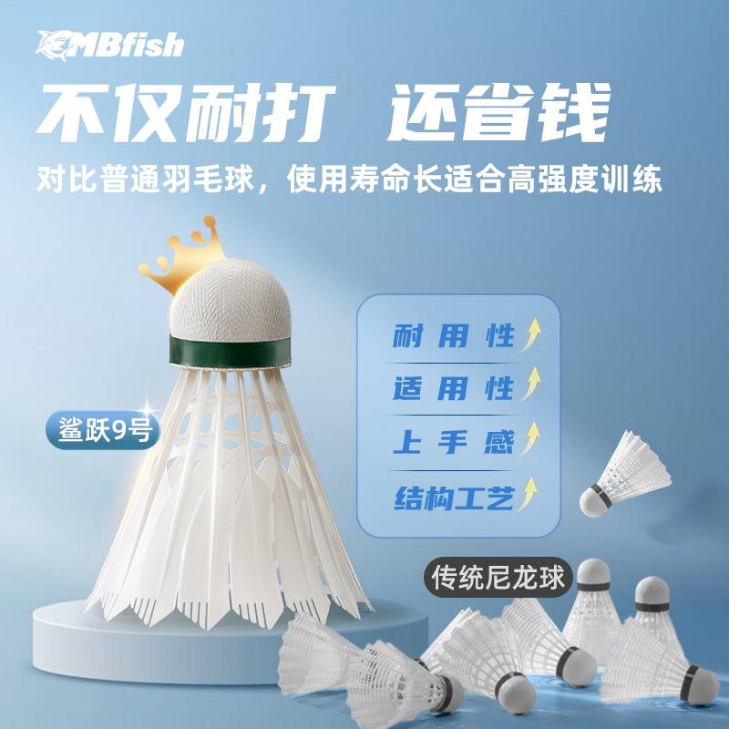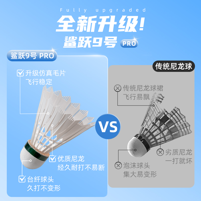 鲨跃9号尼龙羽毛球仿真超耐打室内外训练防风稳定正品打不坏鸭毛