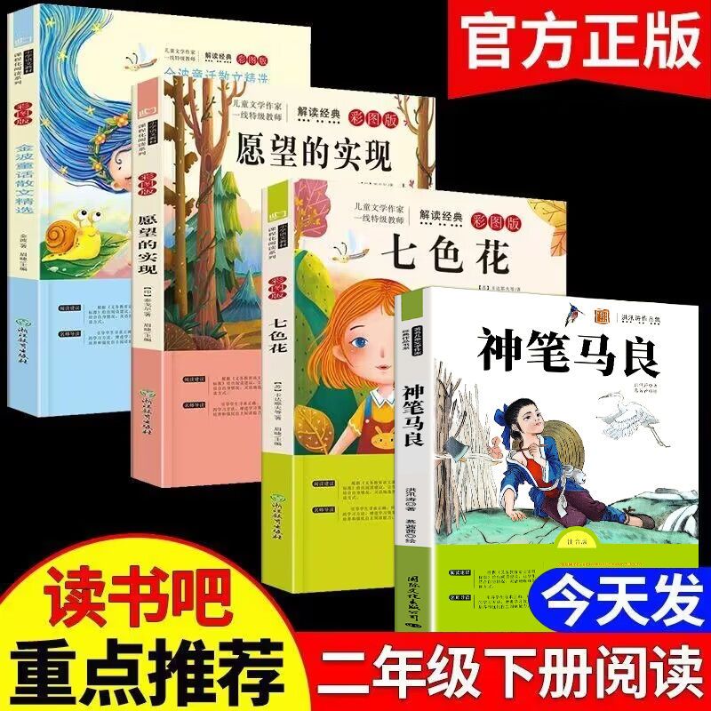 快乐读书吧二年级上册下册必读课外书5册彩图正版神笔马良七色花愿望的实现一起长大的玩具大头儿子和小头爸爸小鲤鱼阅读故事温馨