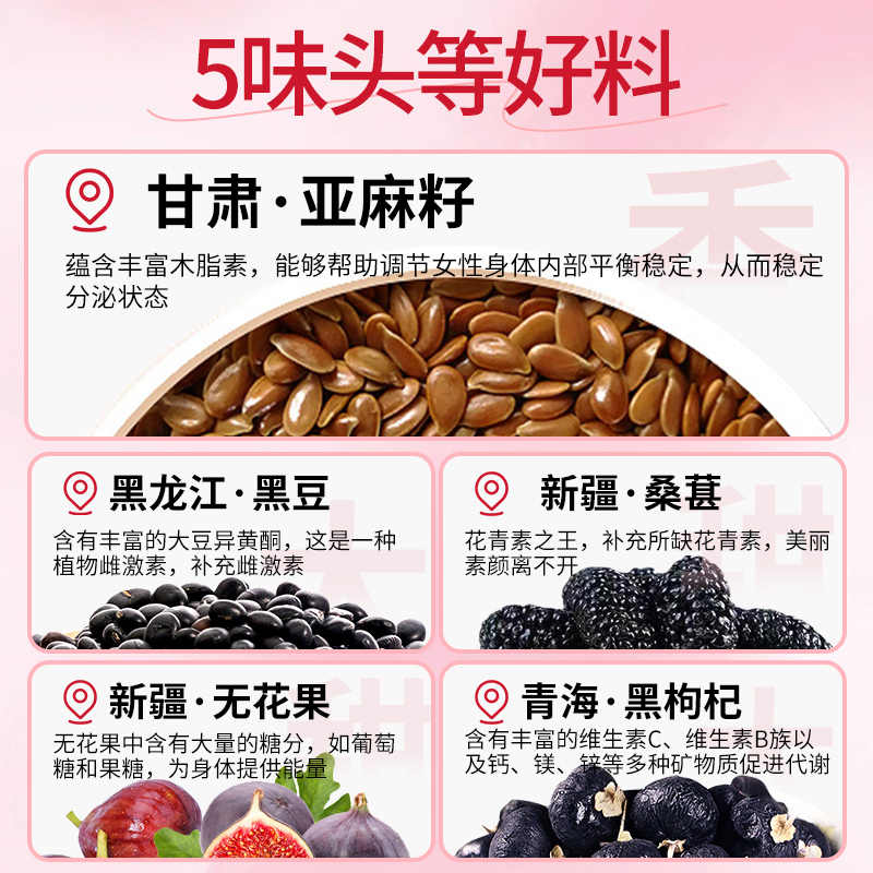 亚麻籽无花果黑豆黑枸杞桑葚干黄体酮种子循环养雌茶包官方旗舰店
