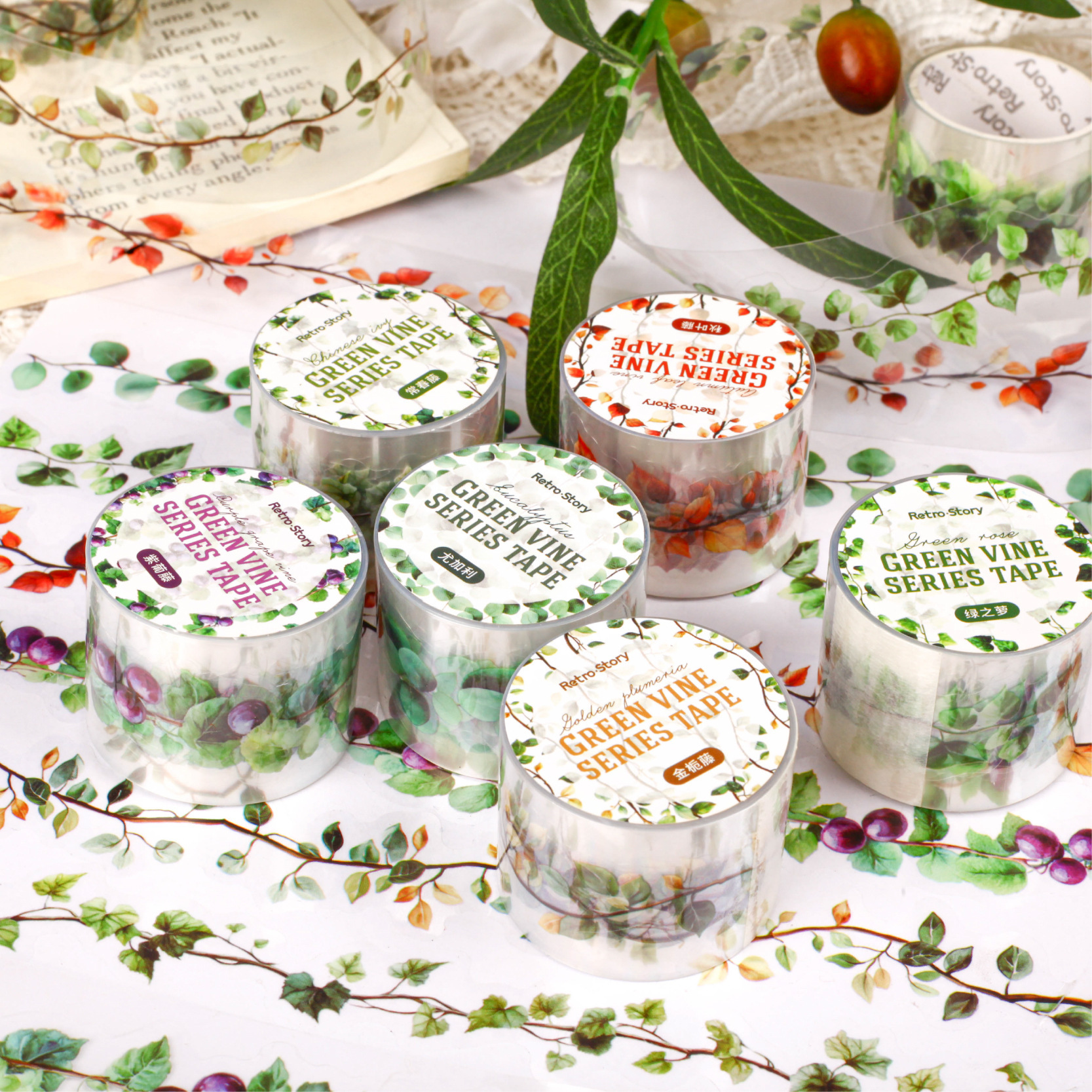翠蔓系列PET防水模切胶带 藤蔓花枝果实树叶手帐装饰造景素材贴画