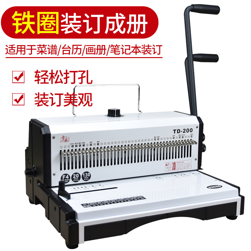 装订机打孔机厚层铁圈装订机手动大型重型打孔装订机雷盛TD-200双