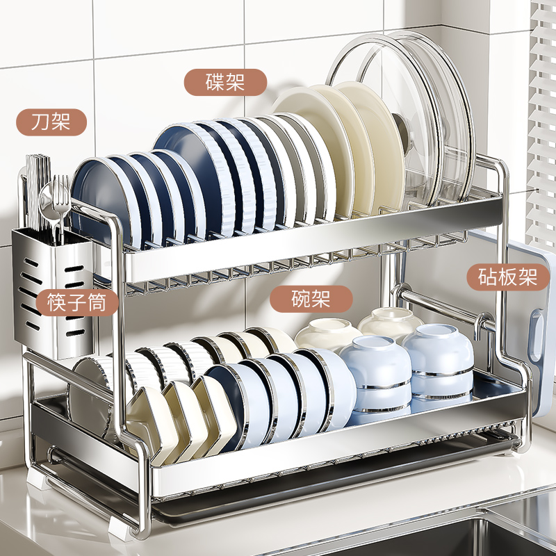 碗碟收纳架沥水篮碗架碗盘碗筷放碗盘子双层新款不锈钢厨房置物架