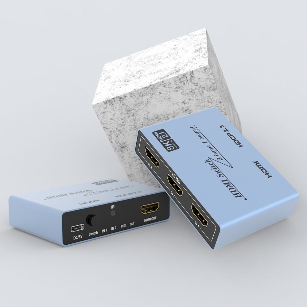 运作8K切换器hdmi2.1三切一3X1带IR遥控8K60 4K120高清分配切换器