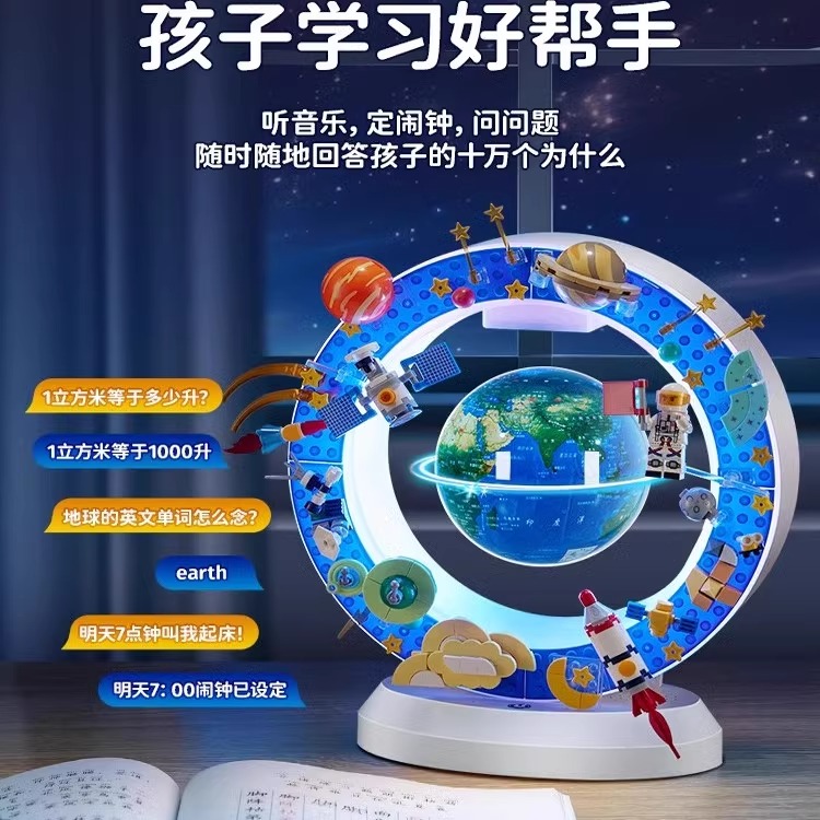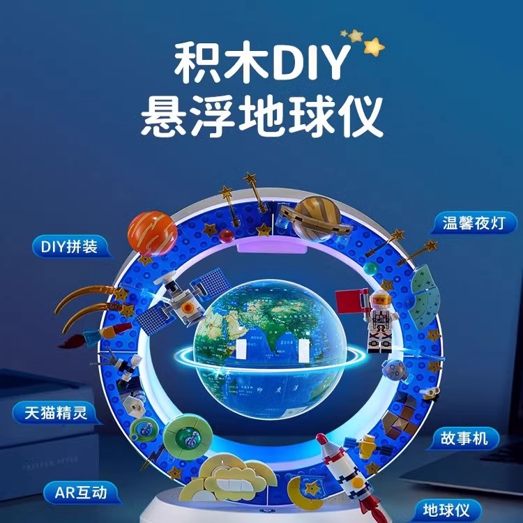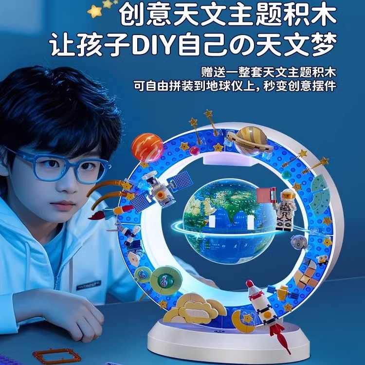 积木磁悬浮地球仪3d立体悬浮儿童启蒙AR正版学生用小学生智能ai天猫精灵玩具摆件男孩女孩生日礼物发光小夜灯