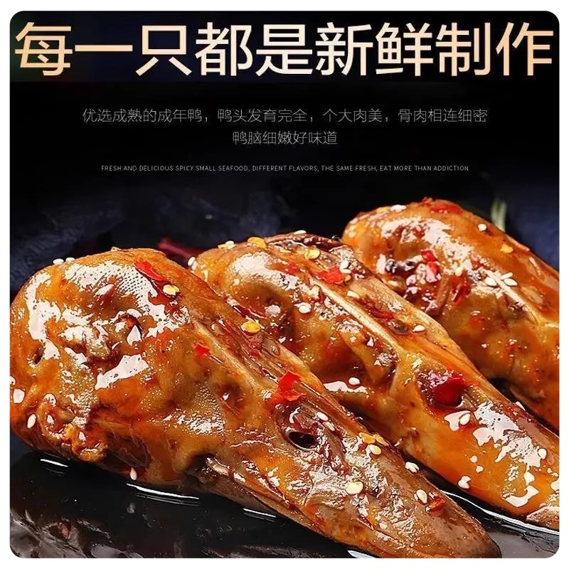 正宗香辣黑鸭麻辣干锅甜辣大鸭头卤味开袋即食解馋嘴下酒菜熟食品