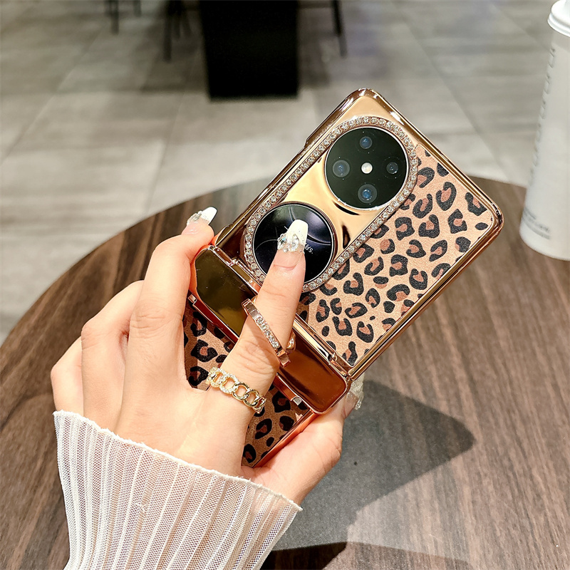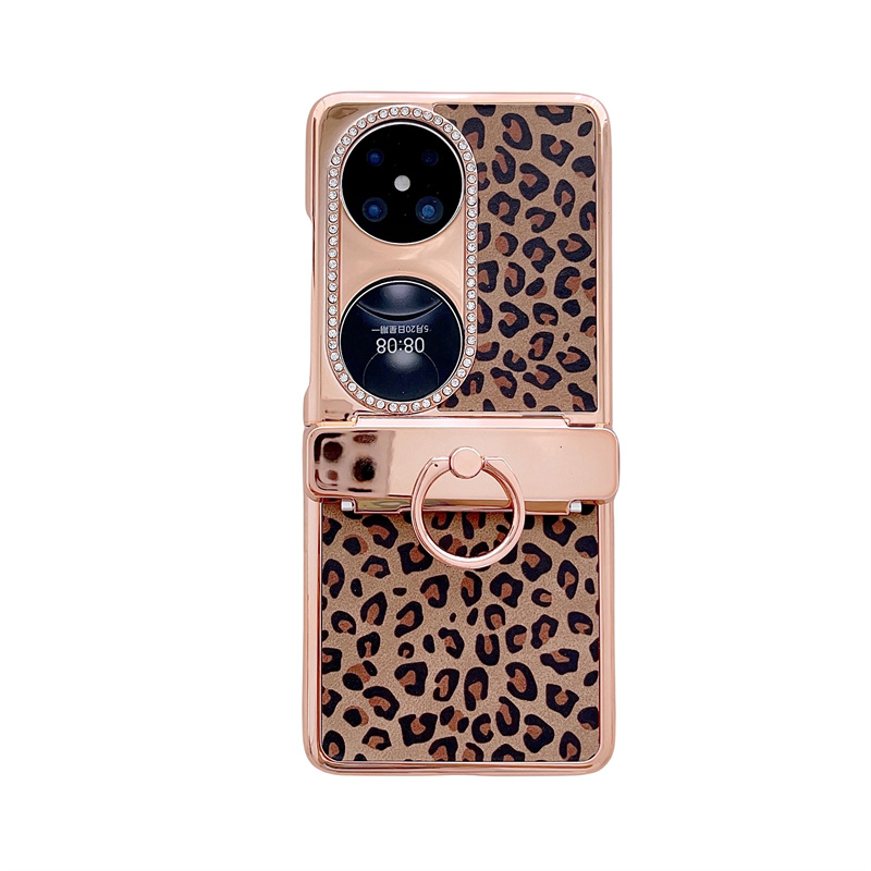 适用于华为pocket2手机壳豹纹带钻闪粉连体指环支架p50Pocket-S2折叠侧铰链全包防摔LEM一AL00钻石手绳保护套