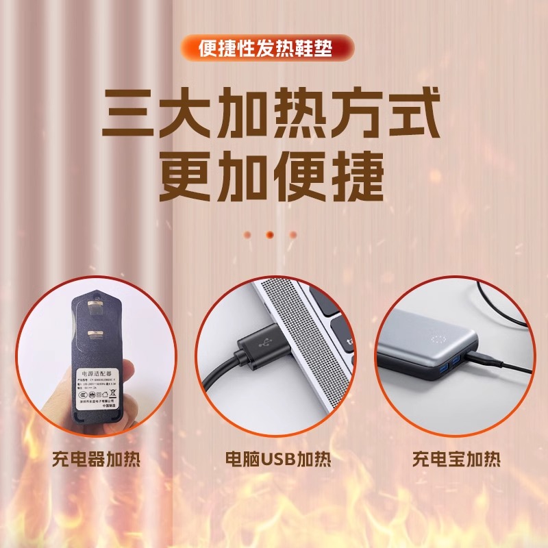 USB电暖鞋垫充电发热鞋垫加热冬季保暖电热可行走男女暖脚宝超薄