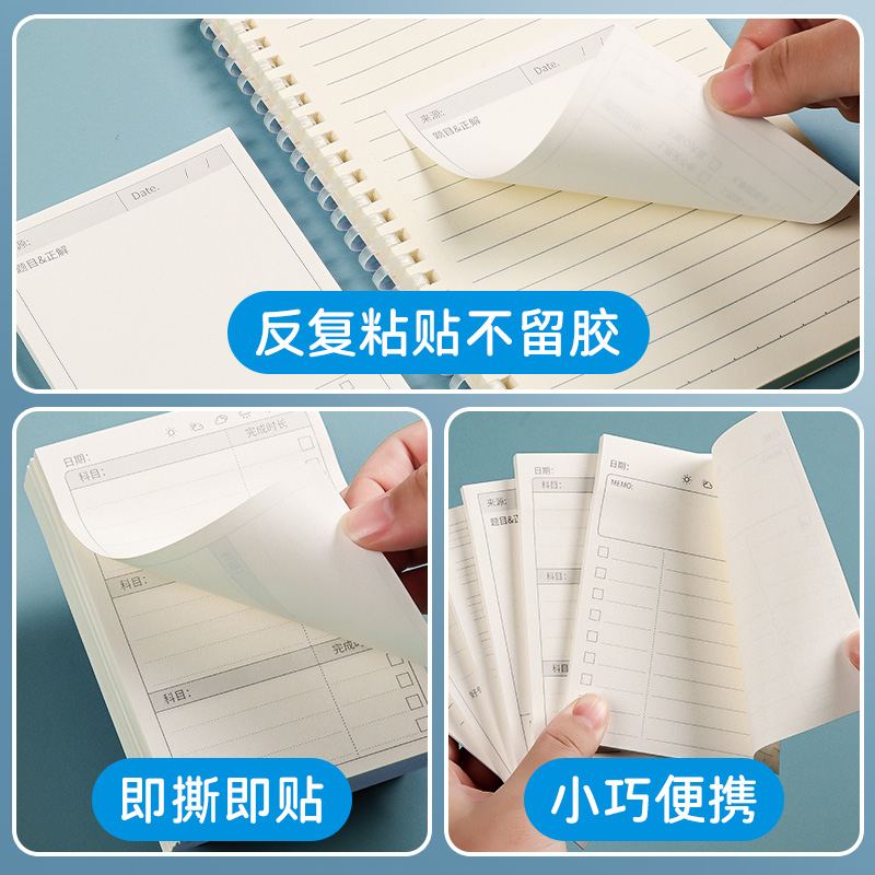 作业登记便签纸小学生专用高颜值有粘性便利贴可粘n次贴每日计划英语横线错题便签本大号课堂笔记必作业便签