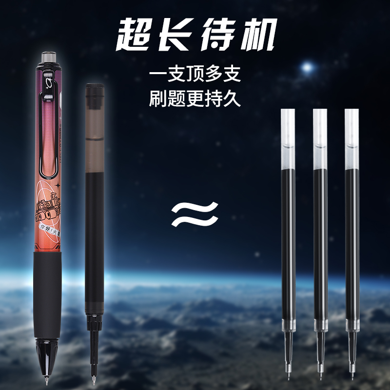 晨光你好火星限定按动中性笔大容量高颜值黑色水笔黑笔顺滑速干ST尖学生考试刷题笔0.5圆珠笔签字笔火星舱笔