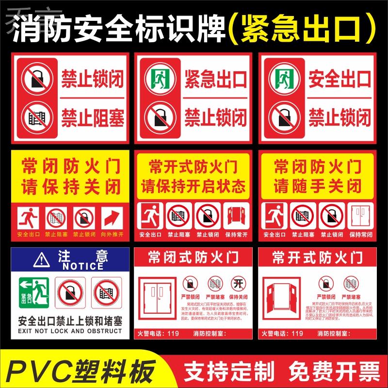 紧急出口禁止锁闭标识牌安全出口禁止上锁和堵阻塞标示牌消防安全警示提示牌应急通道常开式闭式防火门指示牌