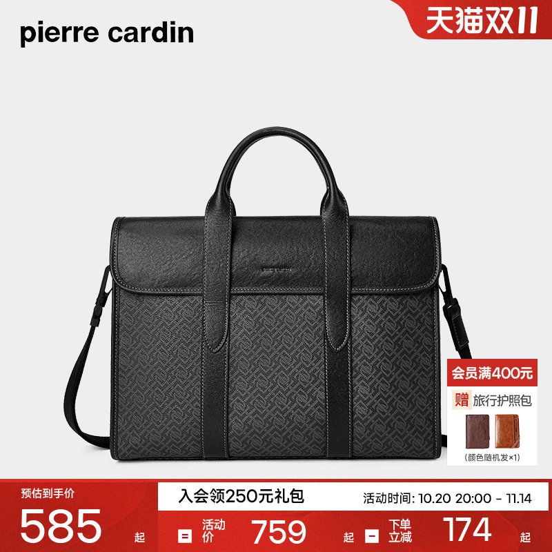 皮尔卡丹新款PVC老花男士公文包男商务撞色拼接手提包实用大容量