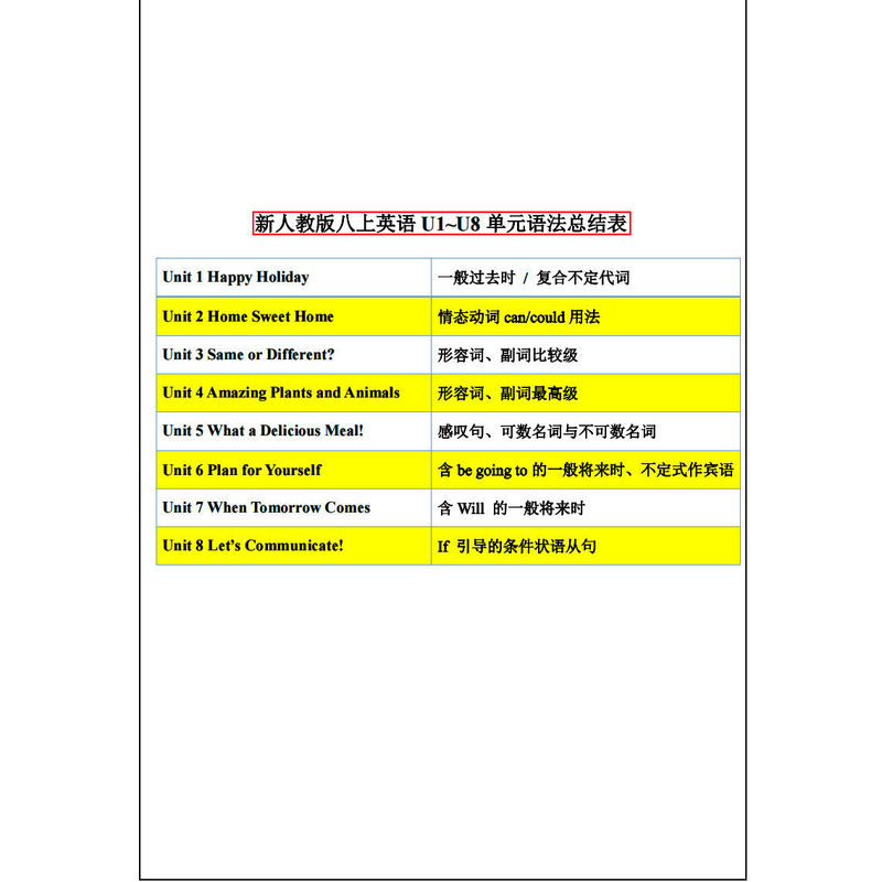 25新八年级上册英语全册英语语法总结表语法每日一练同步练习考点