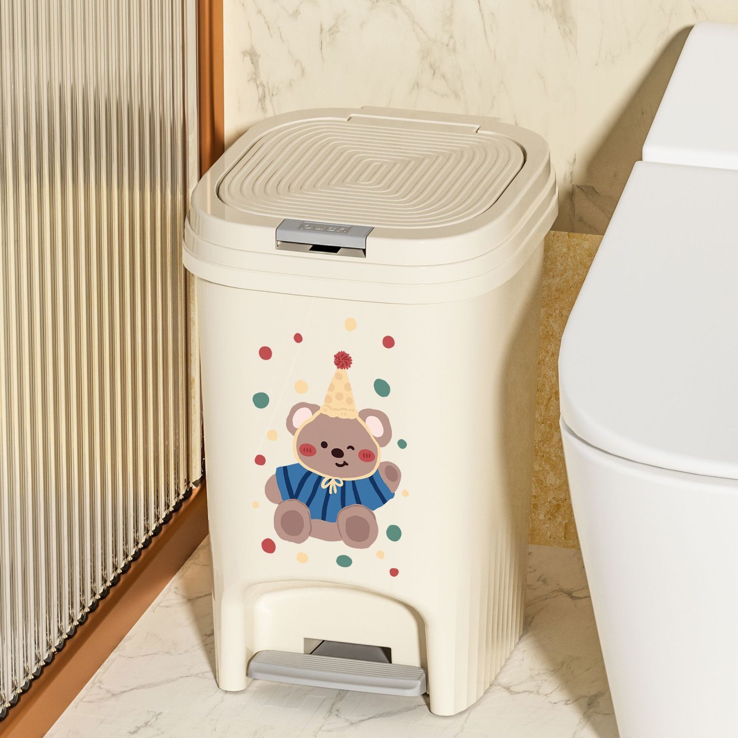 厨房大容量垃圾桶脚踏式高颜值卡通印花厕所卧室新款按压式纸篓桶
