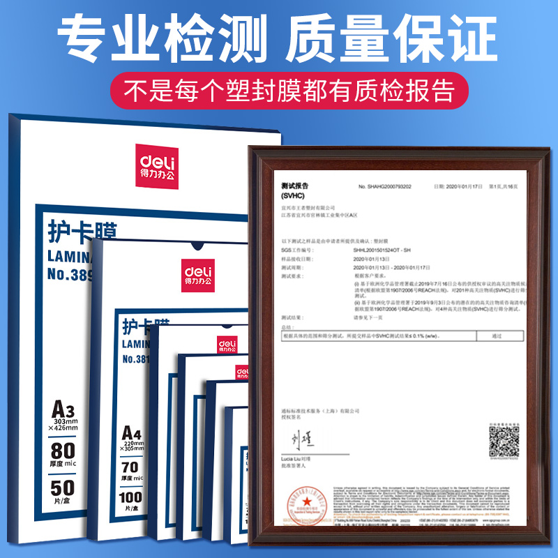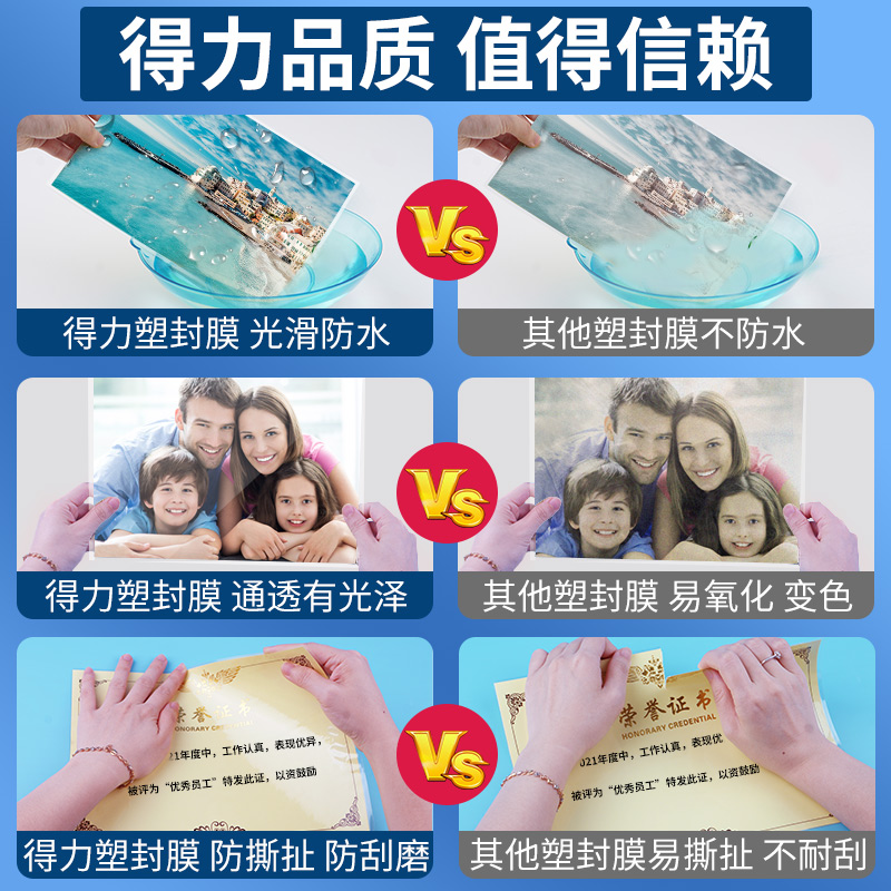 得力防水塑封膜3819照片护卡膜100张7C过塑膜A4照片塑封机专用耗材热缩膜3寸5寸6寸7寸透明相片保护膜过胶膜