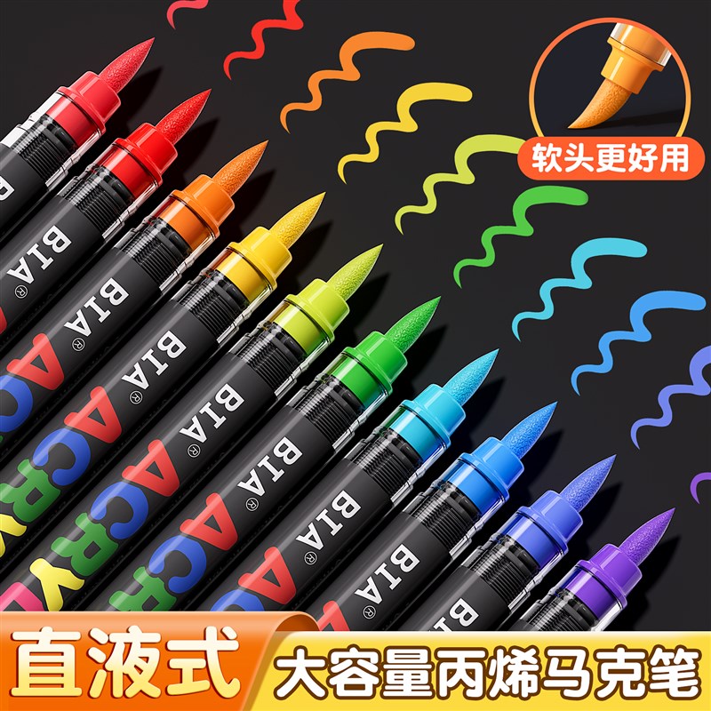 直液式丙烯马克笔软头大容量水彩笔小学生美术可水洗六一儿童节礼