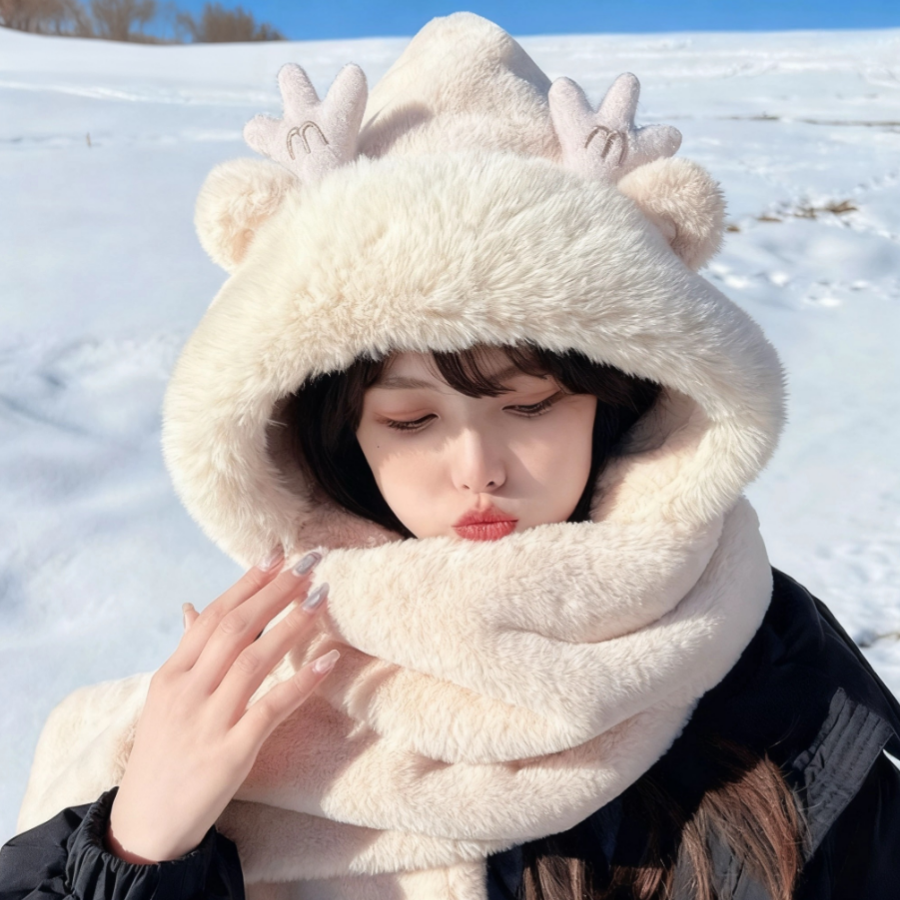龙宝帽子秋冬女围巾手套一体冬季围脖可爱保暖毛绒冬天三件套骑车