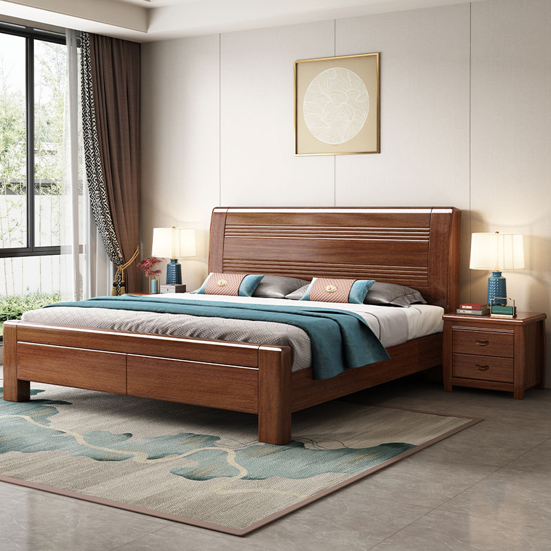 实木床现代简约胡桃木主卧1.5米双人床1.8米主卧轻奢婚房双人床