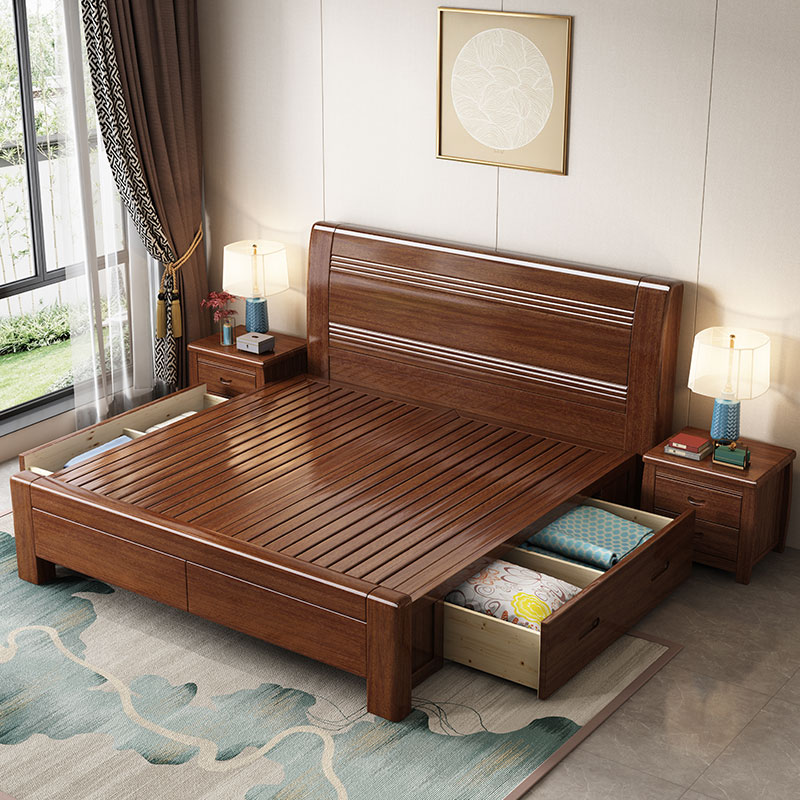 现代简约实木床1.8米主卧双人床1.5M单人经济型高箱储物大床