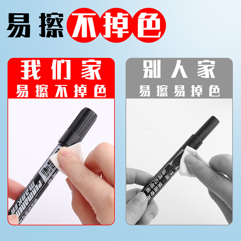 白色油漆笔防水防油不掉色记号笔白色补漆笔油性汽车描轮胎笔工地专用黑色工业速干白漆大头笔涂鸦描边标记笔