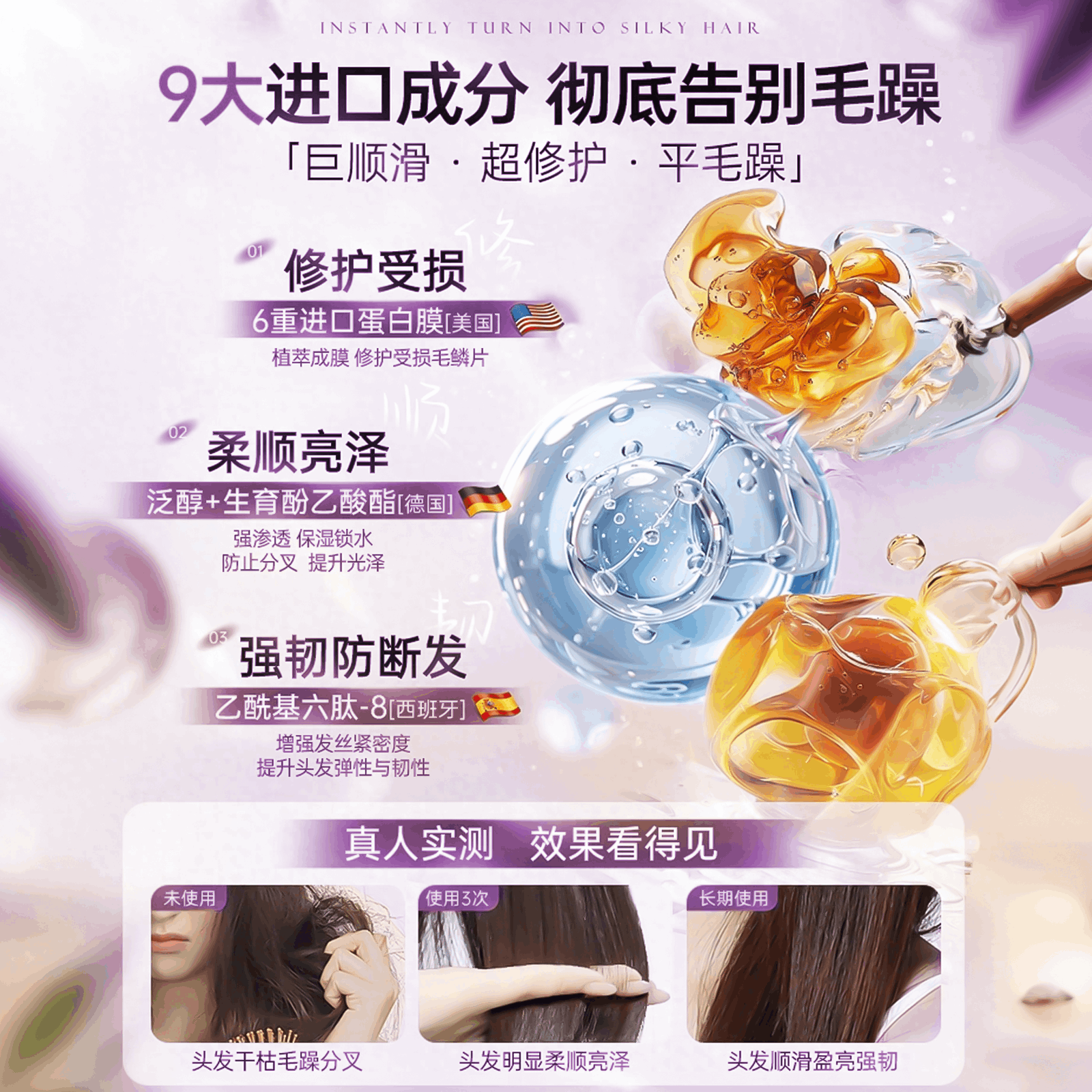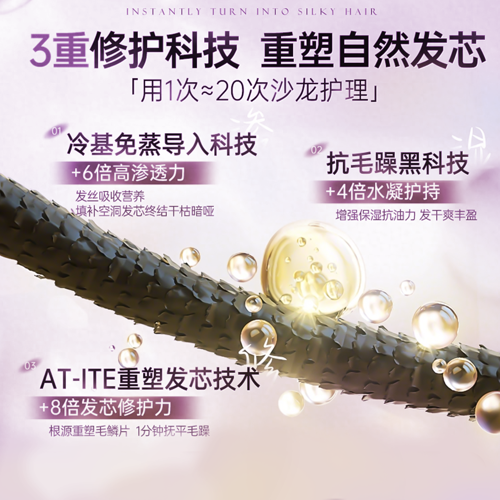 闪钻发膜修护干枯补水顺滑染烫受损毛躁柔顺护发素还原酸蛋白矫正