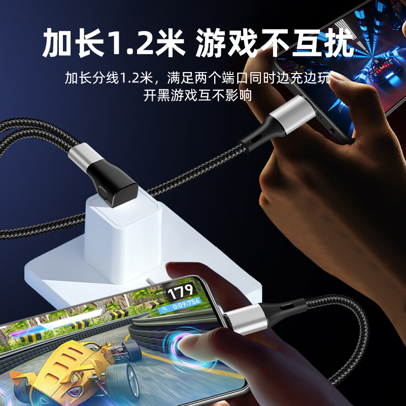 pTouD双头安卓一拖二数据线2二合一超级快充适用苹果华为和全typec多头tpc手机充电器线一分二加长车载两用冲