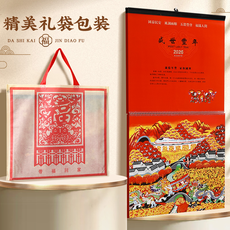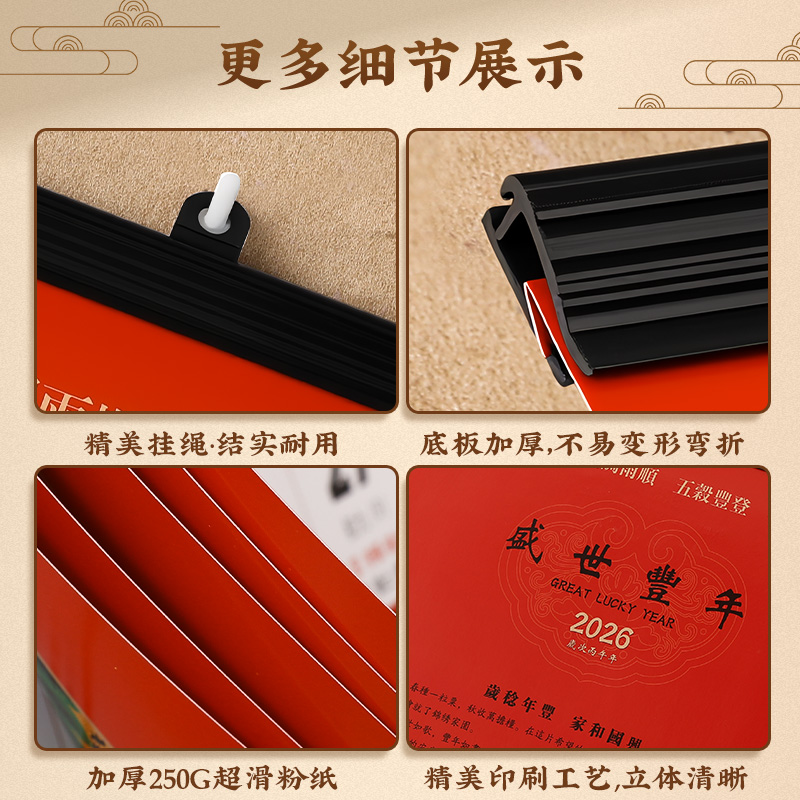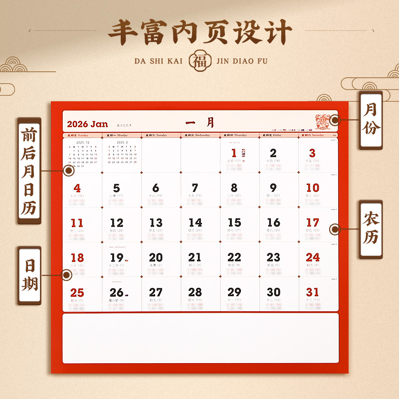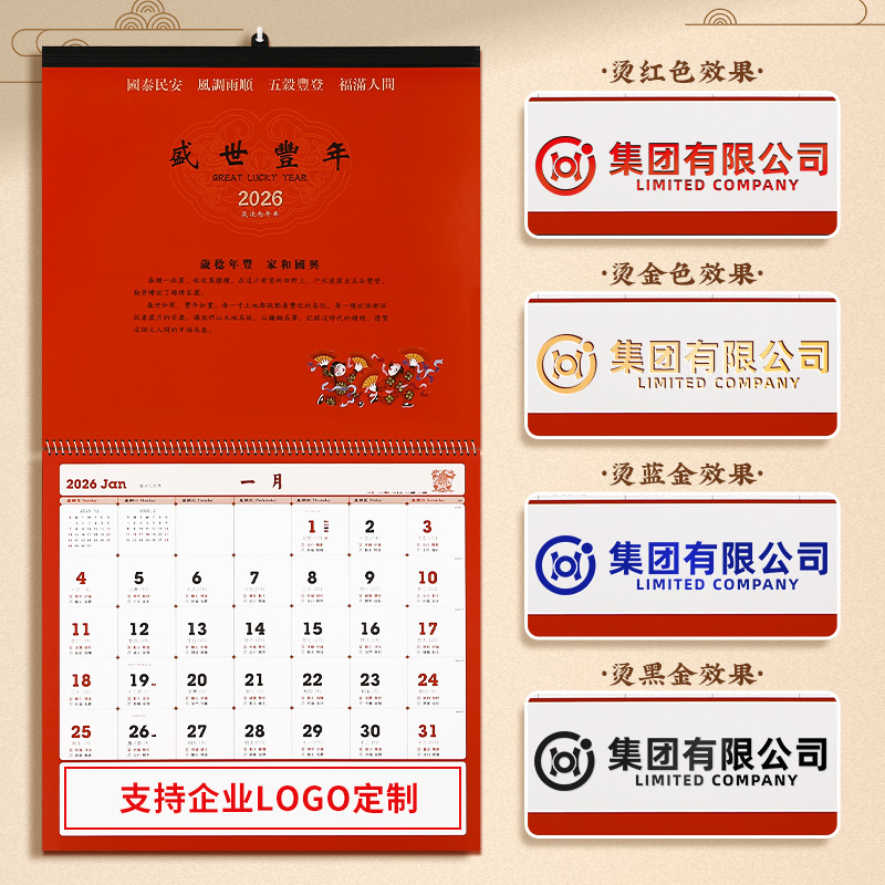 2026新款挂历红色挂历能清晰呈现每月布局的精美月历也是可细致记录每日的实用日历支持企业logo多色烫印定制