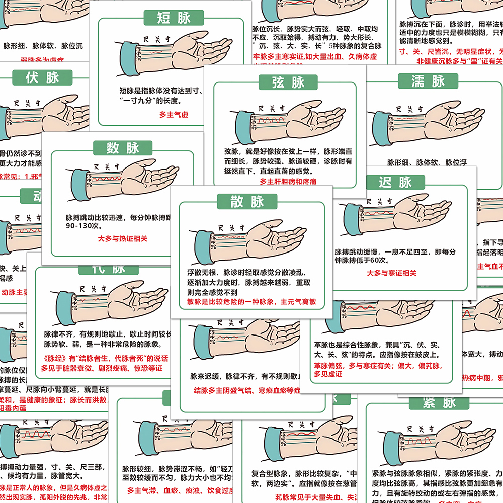 112张中医脉象基础知识科普传统中药学知识点中医文化传承贴画diy