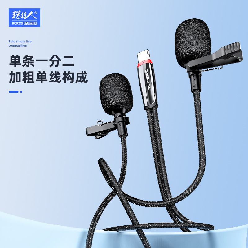 猎狼人新一代双麦双通道立体声录音麦克风适用吃播采访表演录音