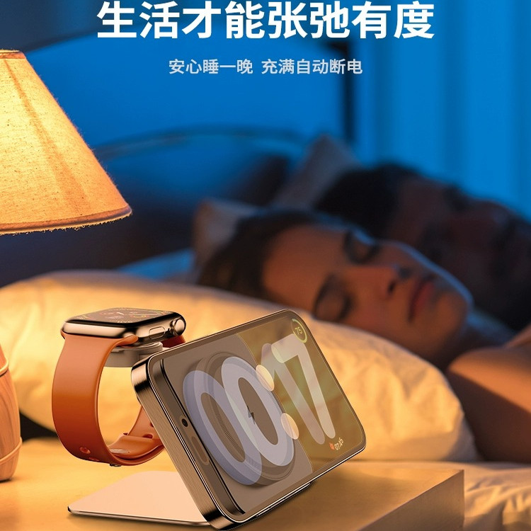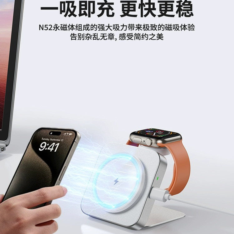 台微电无线充电器磁吸适用苹果手机三合一magsafe支架桌面底座手表二合一便携iphone17/16/15Pro全家桶watchS