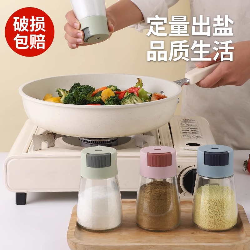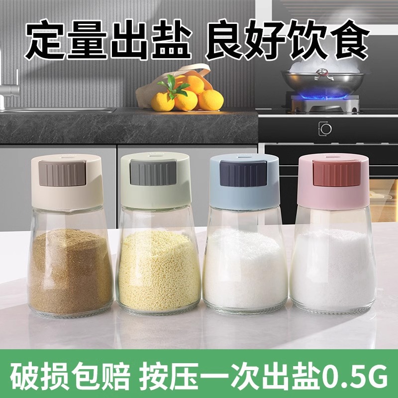 厨房玻璃调味控盐瓶按压式定量调味罐密封调料盒食盐罐味精调料罐