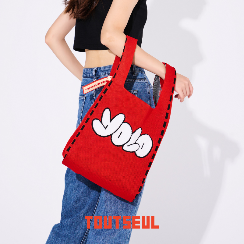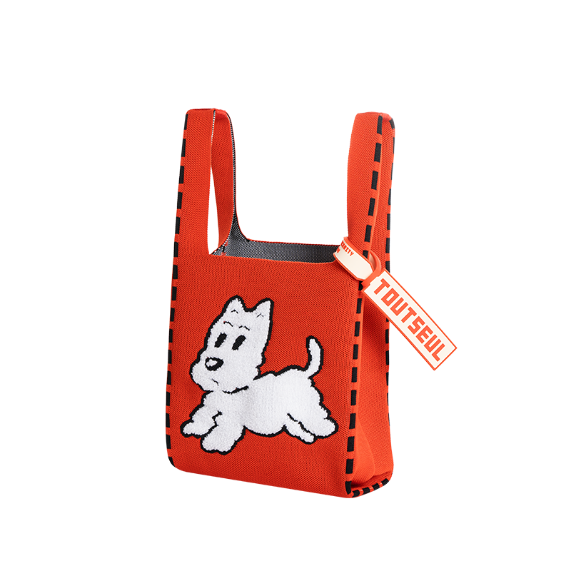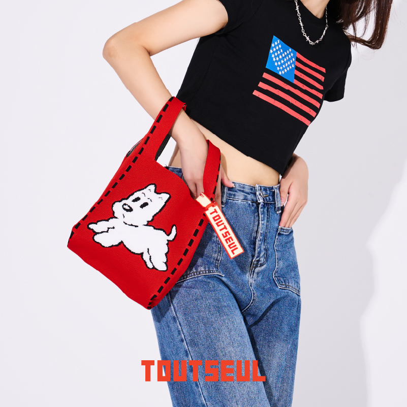 TOUTSEUL小狗绒面针织包大容量包包女红色手提包可爱手拎包托特包