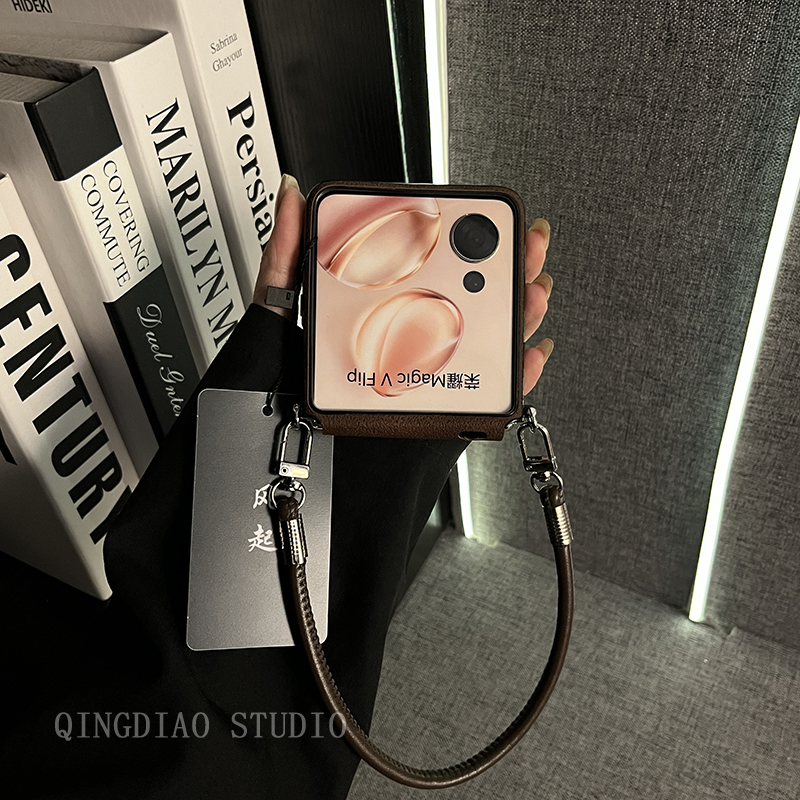 秋冬可爱猫咪支架手提绳适用于荣耀MagicVFlip2手机壳新款magic折叠屏vflip限量版商务网红翻盖保护套女潮流