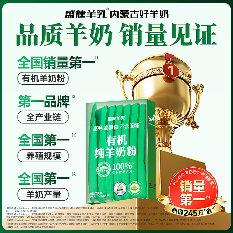 盛健内蒙有机纯羊奶粉小绿盒儿童成人女生中老年无蔗糖营养奶粉