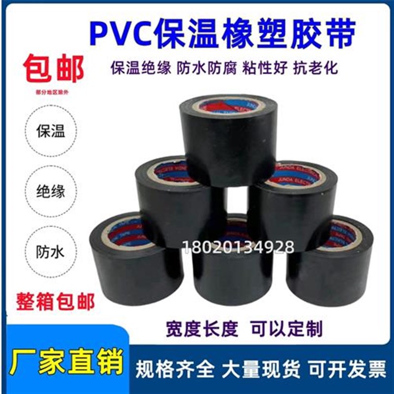 保温胶带PVeC橡塑电工电气绝缘胶布缠绕膜黑色5cm整箱空调扎带管