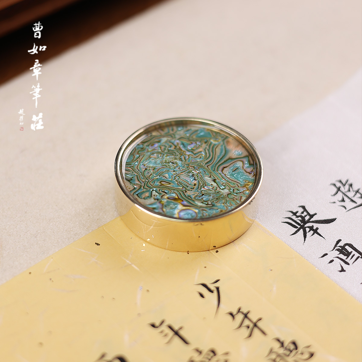曹如章实心黄铜螺钿镇尺圆形镶嵌镇纸创意高档文房雅器新中式书房