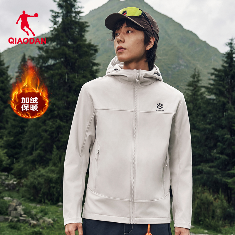 乔丹男款加绒外套男2025秋冬季新款户外保暖风衣夹克软壳运动衣服