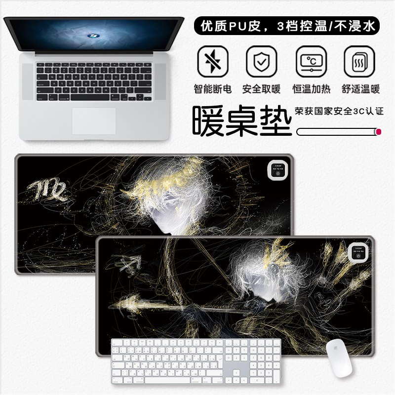 十二星座冬季加热鼠标垫超大号冬天发热电脑键盘办公暖手电热桌垫