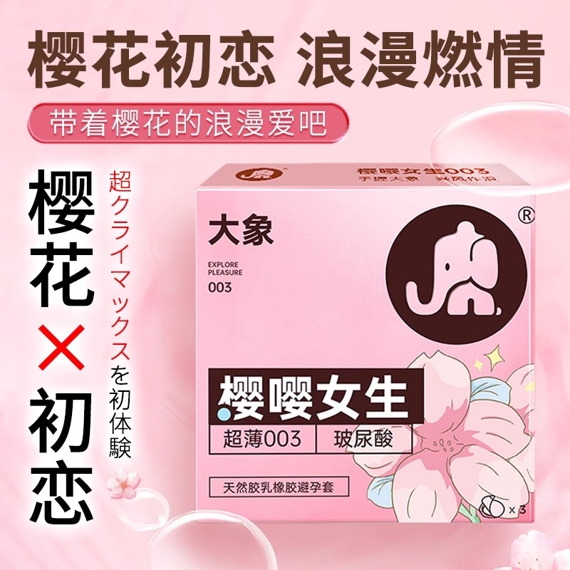 【003玻尿酸】大象避孕套男用超薄裸入安全套小粉盒官方旗舰正品