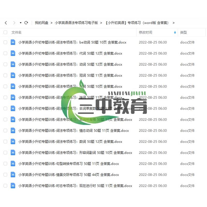 小升初小学英语语法专项练习题附试题及时态总结Word可编辑电子版