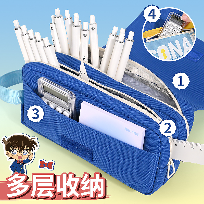 名侦探柯南联名笔袋初中生大容量怪盗基德文具盒男孩款中学生简约铅笔袋男生学习用品创意高颜值笔盒网红爆款