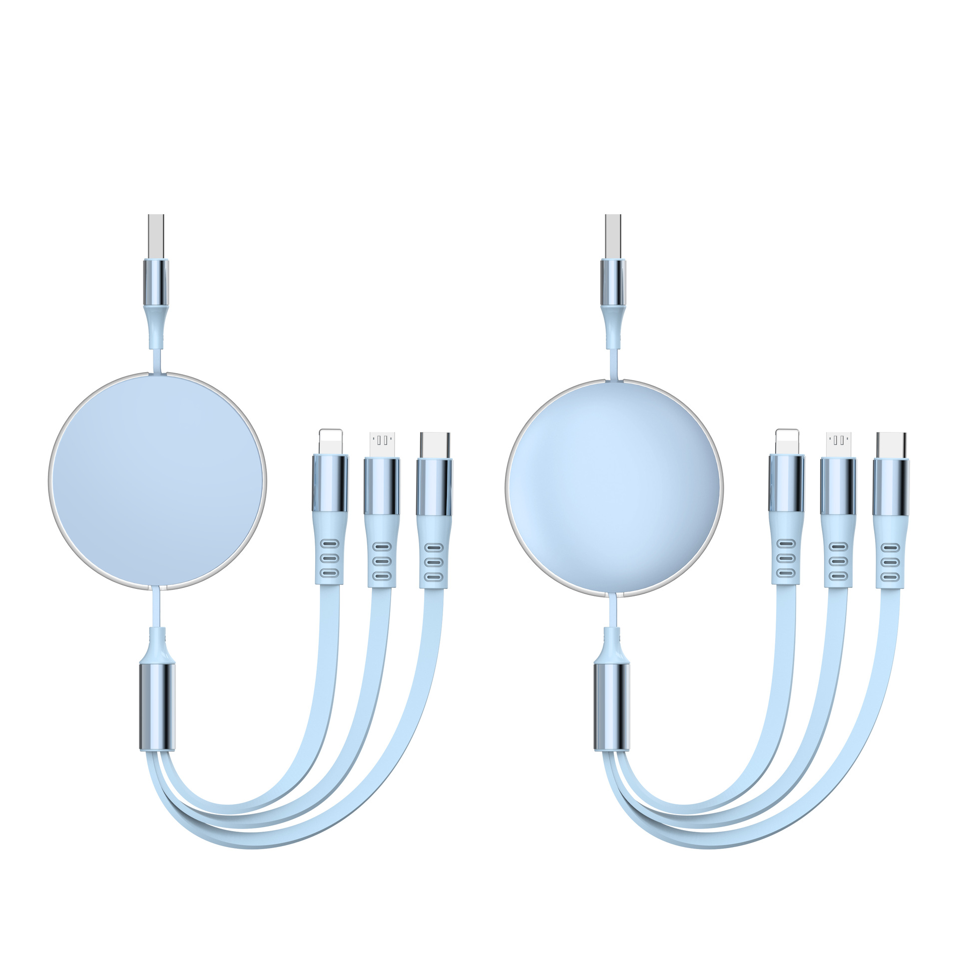 惠麦冰清款三合一快充线企业LOGO定制可印公司标识会议礼品促销一线三用伸缩自如支持100W闪充安卓苹果充电线