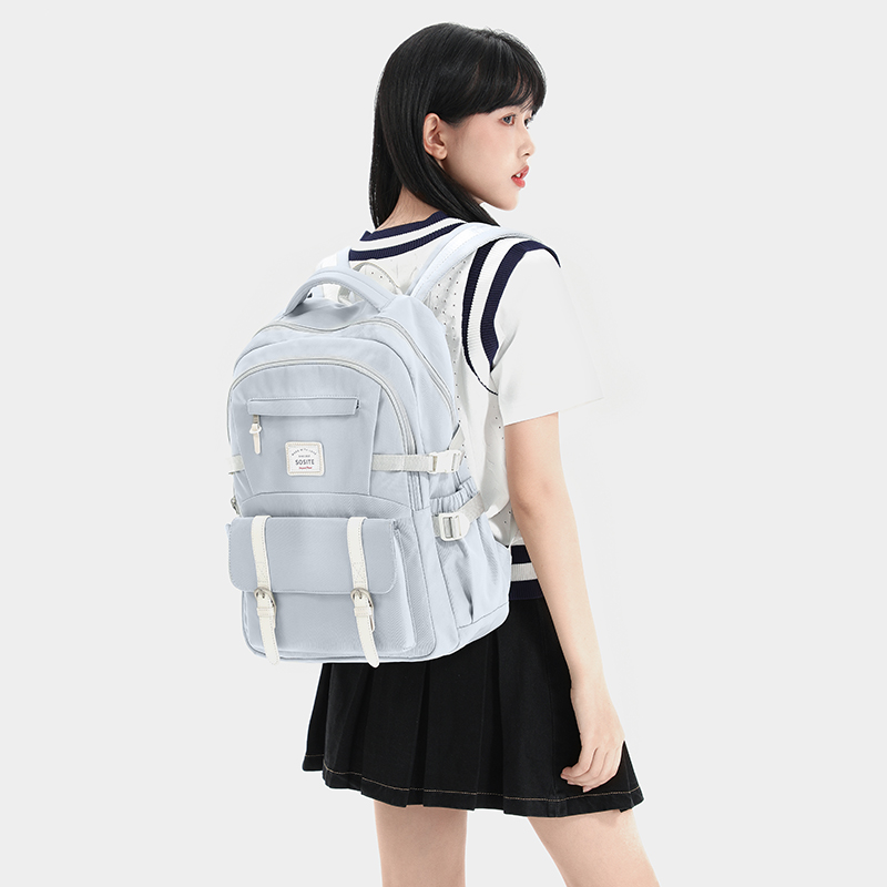 SOSITE新款马卡龙双肩包女学生大容量百搭电脑背包高颜值减负书包