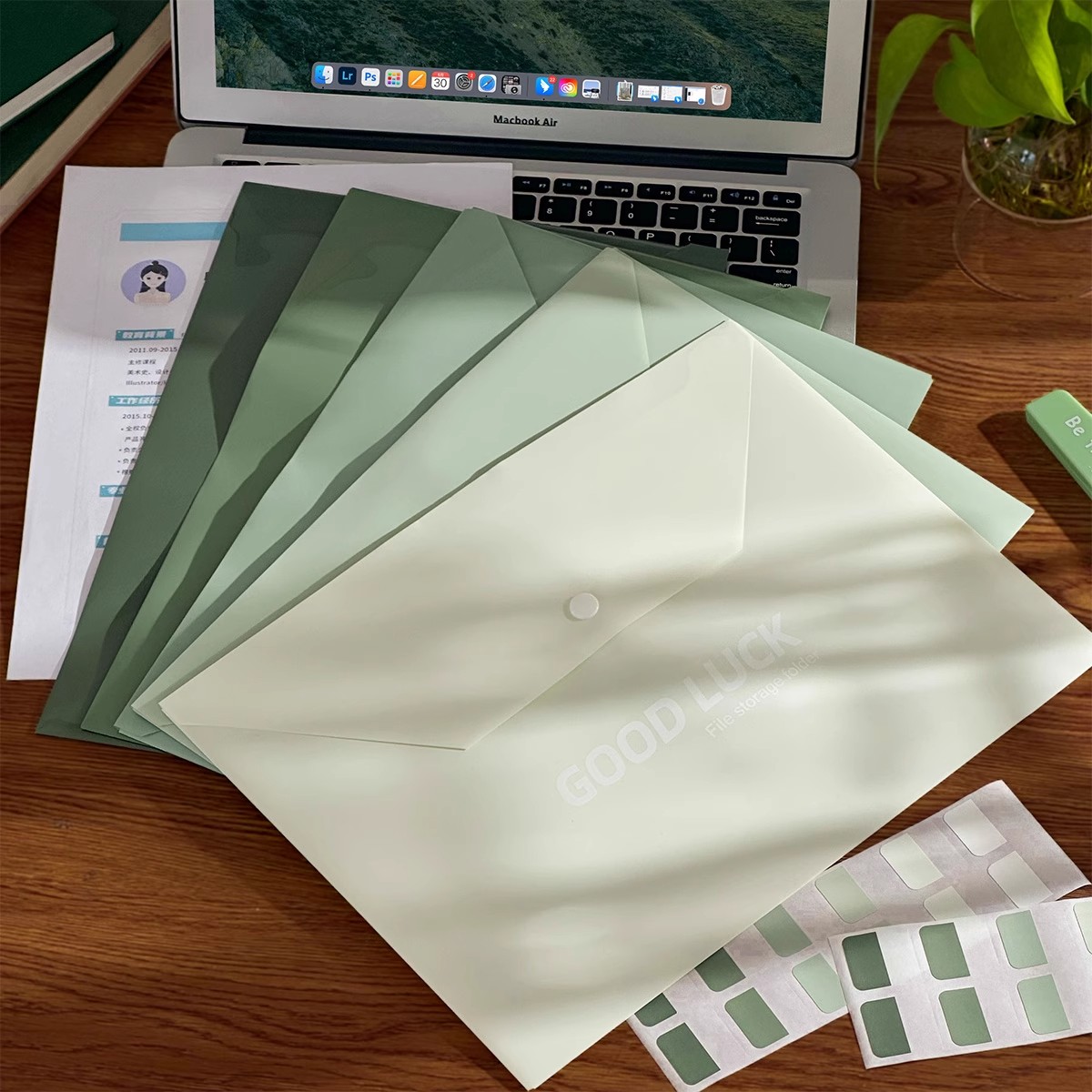 百利文渐变系A4文件袋按扣学生用加厚大容量试卷收纳袋高颜值透明整理袋办公用品资料袋档案袋通用防水公文袋